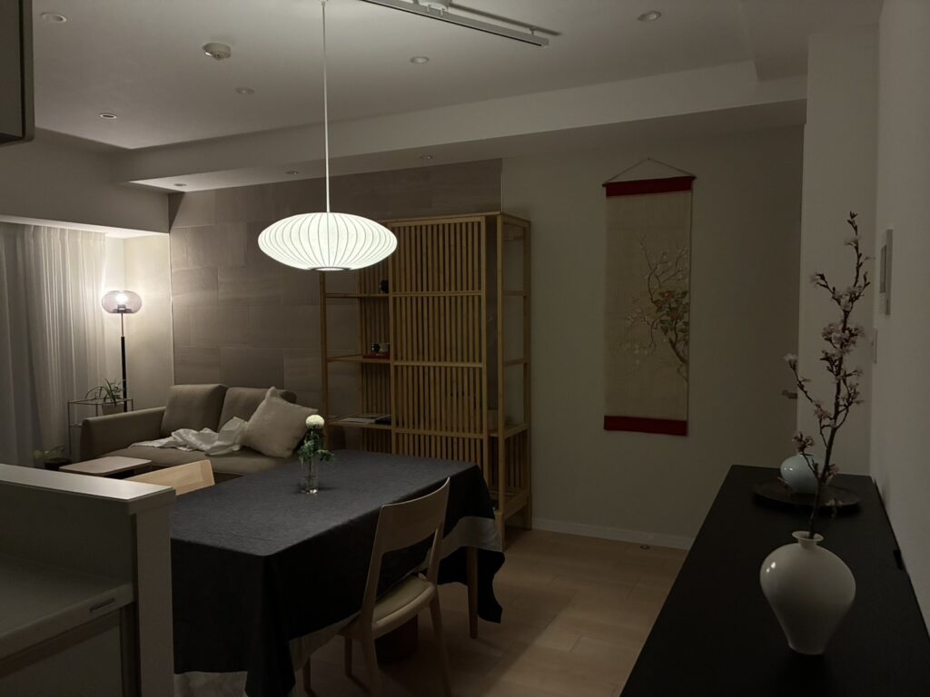 今回は私のインテリアコーディネートだけでなくS様による、各アイテムの選定や感性も加わることでこれまでにはない新しいジャパンディスタイルのお部屋が完成しました。S様の協力によって素敵な空間が作れたと思います。