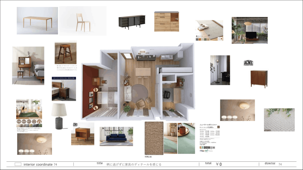 今回のインテリアコーディネートのご依頼においてご提案したアイテムはこちらの通りです。